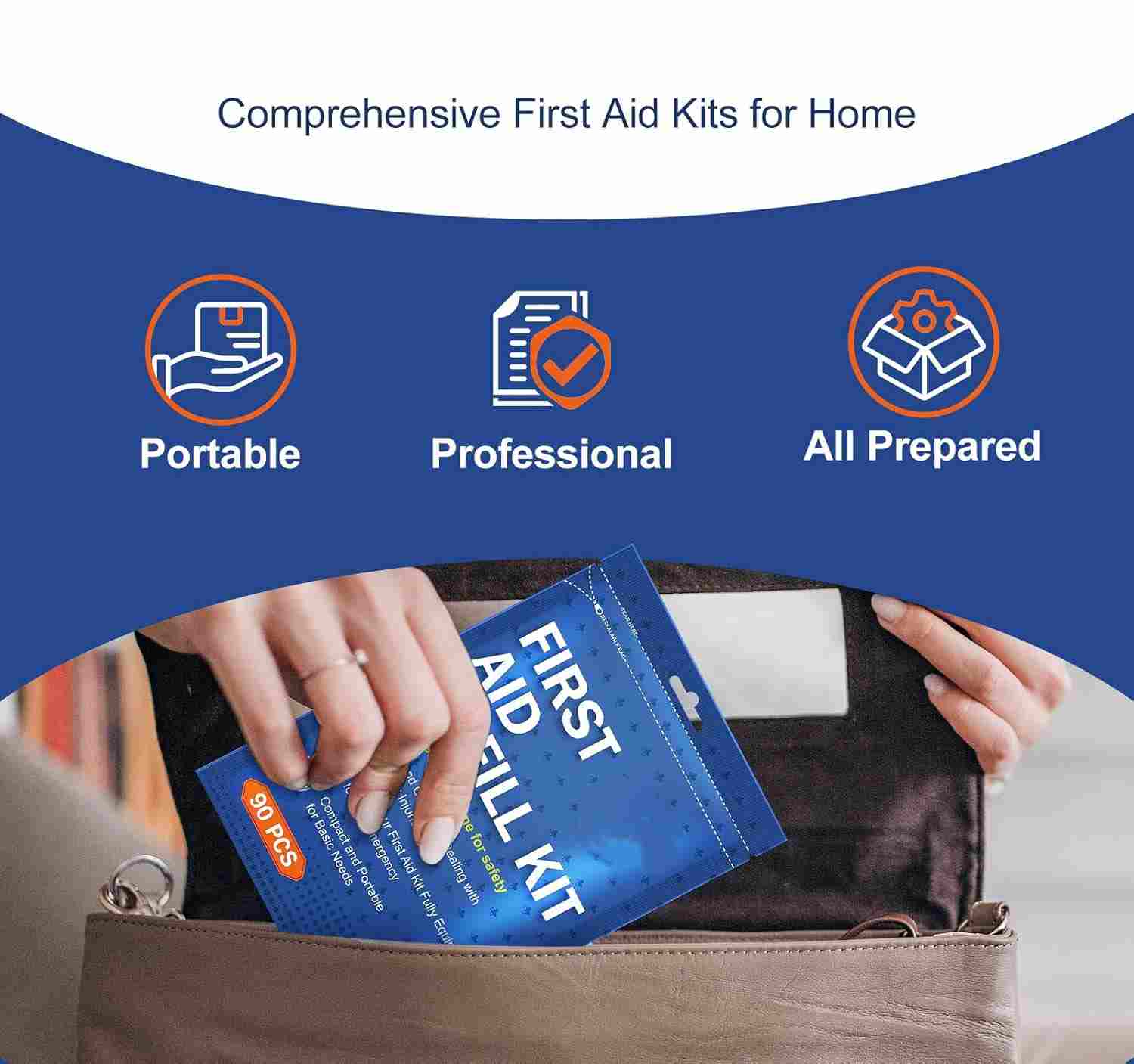 ชุดเติมปฐมพยาบาลคือโซลูชันด้านความปลอดภัยที่จำเป็นสำหรับทุกครอบครัว ซึ่งออกแบบมาเพื่อรับมือกับการบาดเจ็บทั่วไปและเหตุฉุกเฉินที่บ้าน ประกอบด้วยผ้าพันแผล ผ้าเช็ดฆ่าเชื้อ กรรไกร เทปกาว ถุงมือ และอุปกรณ์ทางการแพทย์อื่นๆ ช่วยให้คุณตอบสนองต่อบาดแผล แผลไหม้ เคล็ดขัดยอก และอุบัติเหตุเล็กๆ น้อยๆ ได้อย่างรวดเร็ว ชุดอุปกรณ์นี้กะทัดรัดและจัดวางอย่างดี ช่วยให้มั่นใจในความอุ่นใจด้วยการเก็บรักษาข้อมูลสำคัญด้านสุขภาพที่สำคัญให้อยู่ใกล้แค่เอื้อมทั้งเด็กและผู้ใหญ่