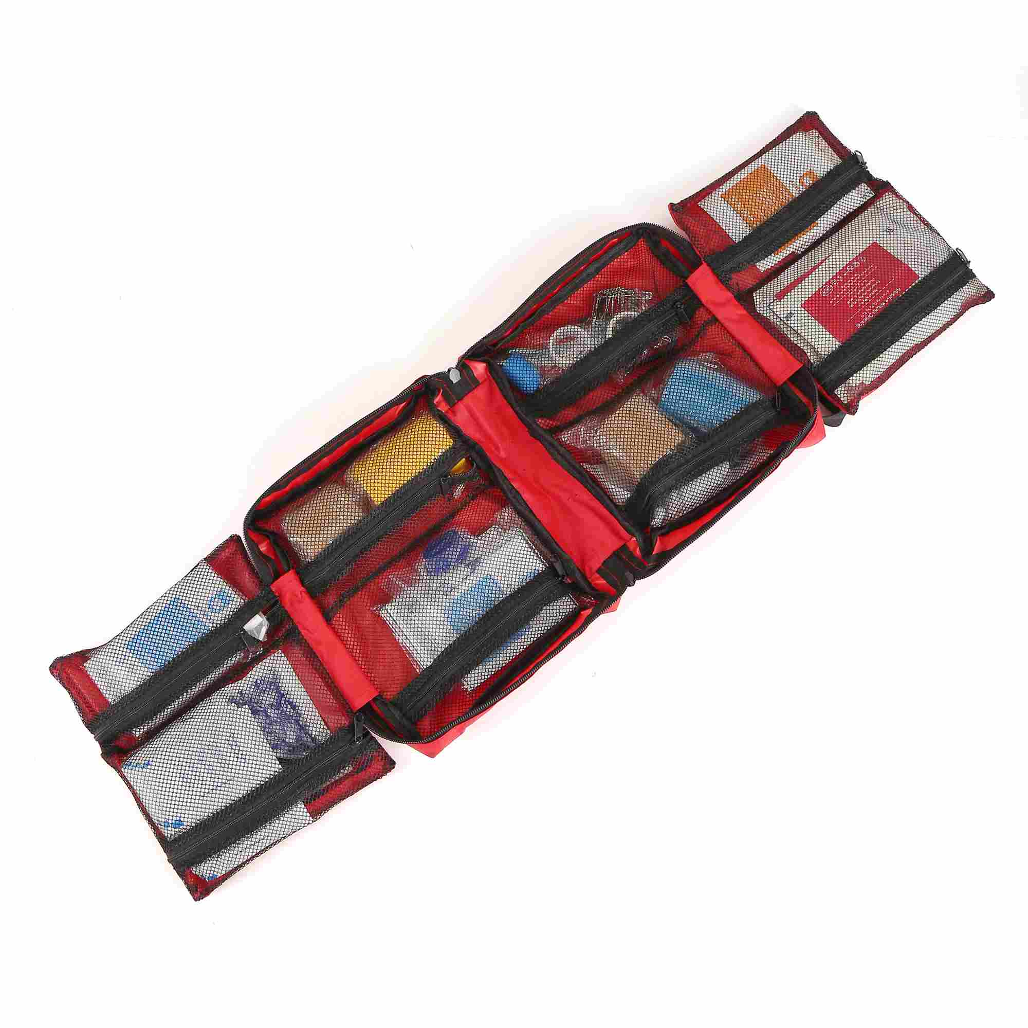 อุปกรณ์ฉุกเฉินครบครัน เช่น ผ้าพันแผล ผ้ากอซปลอดเชื้อ น้ำสลัด แผ่นแอลกอฮอล์ ถุงมือ เทป และอื่นๆ